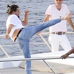 Fresh off of sunning his vacation belly in Miami, Leonardo DiCatchAHo took his ass to St. Tropez where he showed us what a scene in Titanic would’ve looked like if Jack Dawson learned karate from Mr. Miyagi. While waiting for the 20 models he ordered to arrive in a crate, the leader of the Pussy Posse wowed his friends with his totally awesome karate moves. You know, a lot of us have said that Leo is two eyebrow-arches away from becoming Jack Nicholson, but I think we’ve had it wrong the entire time. That ponytail… That beard… The way it looks like his belly is gracefully jiggling as he delivers a serious, serious karate kick. If Leo replaces Lukas Haas with a panda and replaces his usual Victoria’s Secret Angel model girlfriend with two Russian sex slaves (“What’s the difference to him?” – you “Good point.” – me), then someone must stop him immediately. Because the world really doesn’t need or deserve two Steven Seagals.